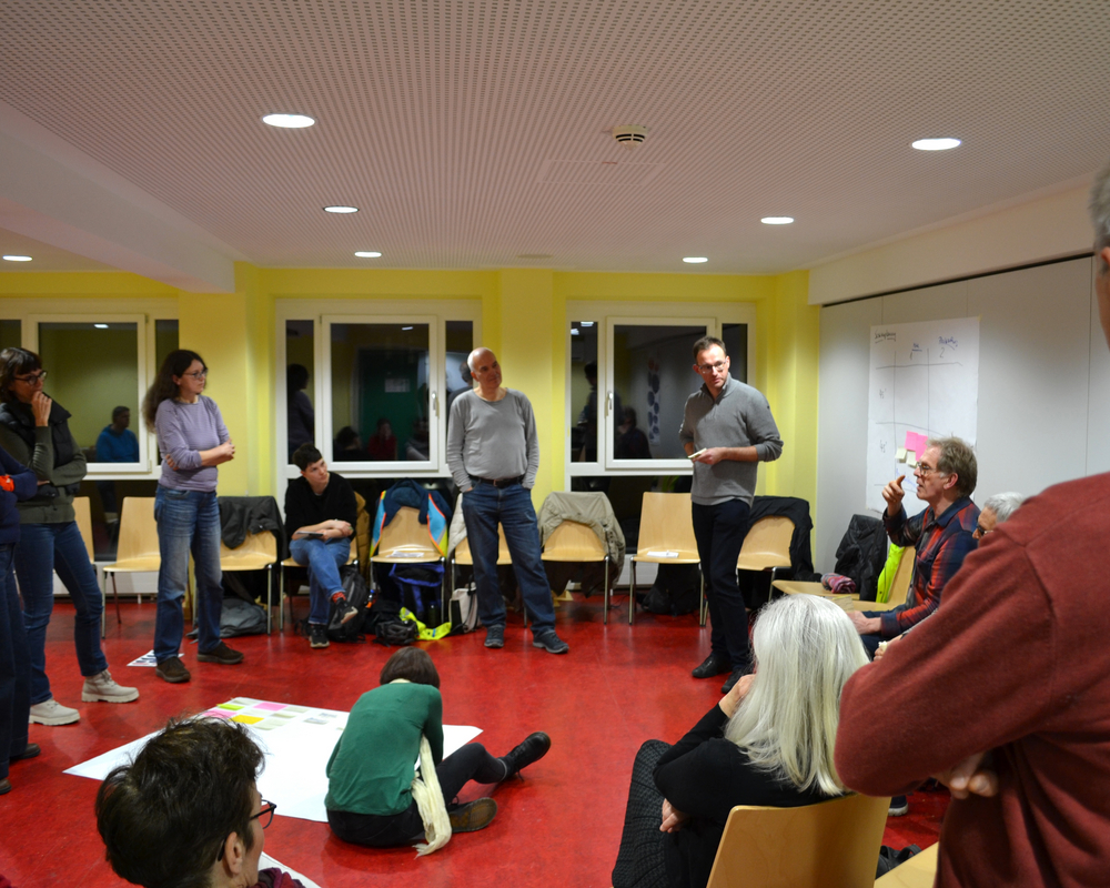 Um diese Fragen zu diskutieren, kamen 35 Menschen aus verschiedenen Gruppen zusammen. Darunter waren vor allem Mehr Demokratie-Mitglieder und -Interessierte, aber auch engagierte Bürgerinnen und Bürger, Aktive aus zivilgesellschaftlichen Initiativen und Studierende. Über zwei Runden mit je zwei Session á 45 Minuten wurde über folgende Themen in Zusammenhang mit demokratischen Freiräumen diskutiert: Praktische Umsetzung, Prozessgestaltung, Bedrohungen und Chancen.